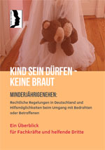 Die Broschüre richtet sich an alle, die beruflich, ehrenamtlich oder auch privat mit diesen Themen in Berührung kommen (könnten). Sie führt die wichtigsten gesetzlichen Regelungen zu sogenannten "Kinderehen" auf, bietet grundlegende Hintergrundinformationen zu dieser weltweit vorkommenden Kinder- und Menschenrechtsverletzung und zeigt anhand eines 10-Punkte-Plans auf, was man bei der Hilfestellung beachten sollte.